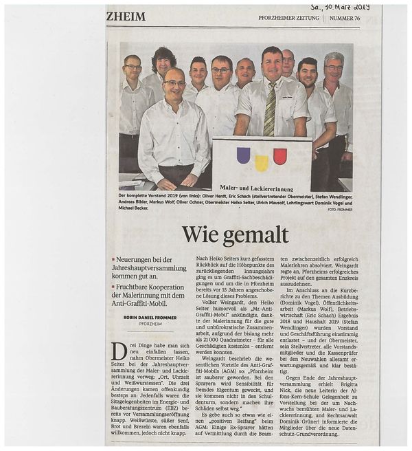 Wie gemalt 30.03.2019 Seit 2019 ist Andreas Bihler auch als Beisitzer in der Maler- und Lackiererinnung tätig. ... lesen Sie hier den Bericht der Pforzheimer Zeitung vom 30.03.2019 zurück